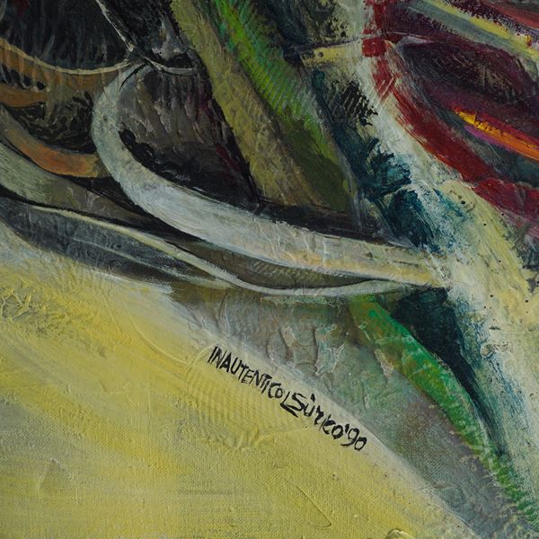 50x50 cm."Astrale Aslana Profonda", 1990, oil on panel, signed and dated in the lower center