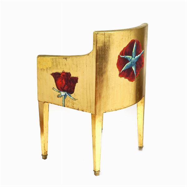 87x63x50 cm.wooden armchair with floral decorations in sand and pigments on a gold background by Massimo Catalani, wears