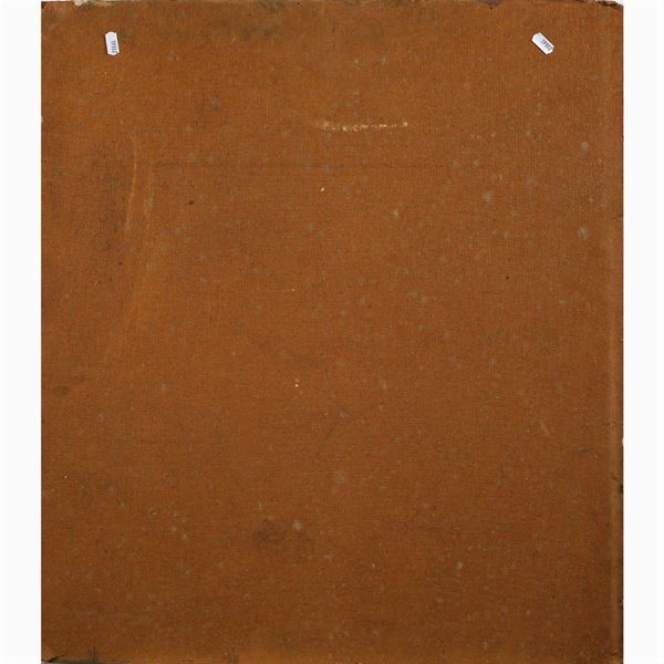 73x63 cm."Crucifixion", oil on masonite, initials A.L. bottom right