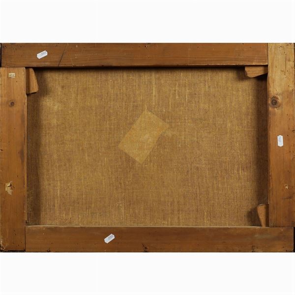 49x69 cm."Passeggiata nel parco", 1878, oil on canvas, signed and dated lower right, defects