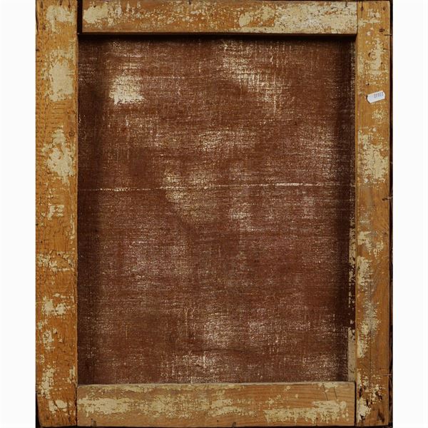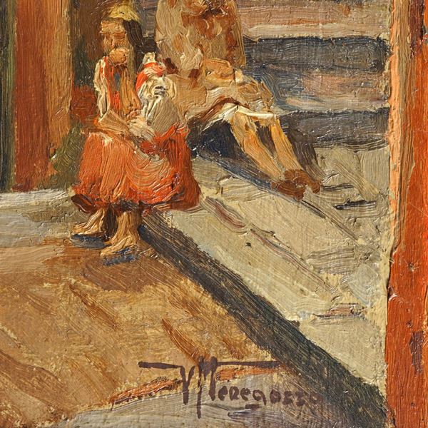 60x50 cm."Glimpse with figures", oil on canvas, signed lower right