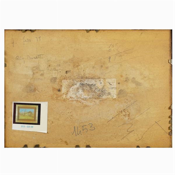"Baita di montagna", olio su tavola, firmato in basso a destra, datato 1935 sul retro