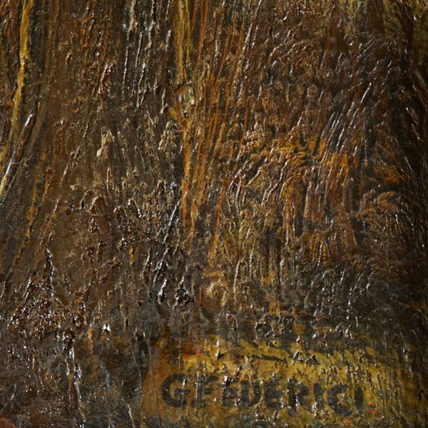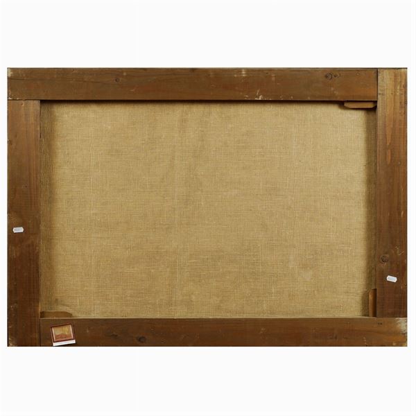 "Pastorella con gregge", olio su tela, firmato in basso a destra
