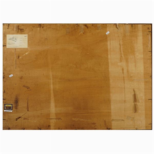 "Pescatori", olio su tavola, firmato e datato 1960 in basso a destra