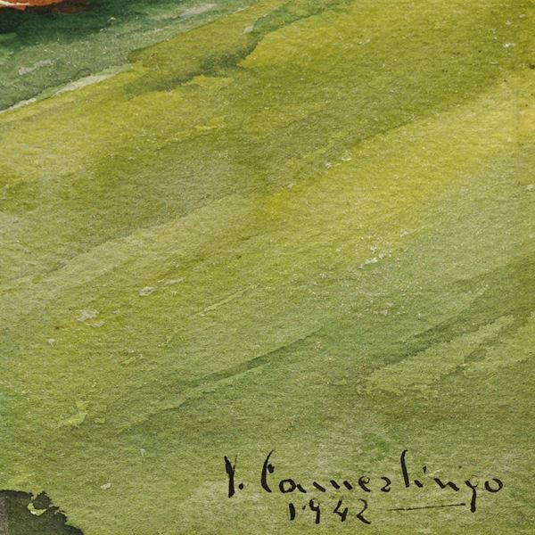 "Paesaggio di montagna", acquarello su carta, firmato e datato 1942 in basso a destra