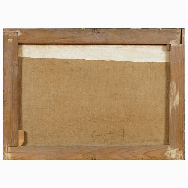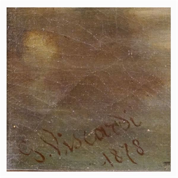 49x68 cm."Gita in barca", oil canvas, signed and dated 1878 lower left