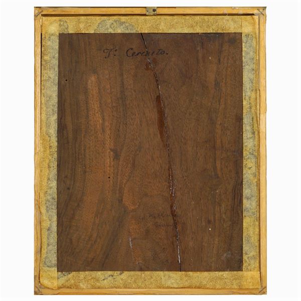 31x24.5 cm."Christ with the crown of thorns", oil on panel, framed, defects