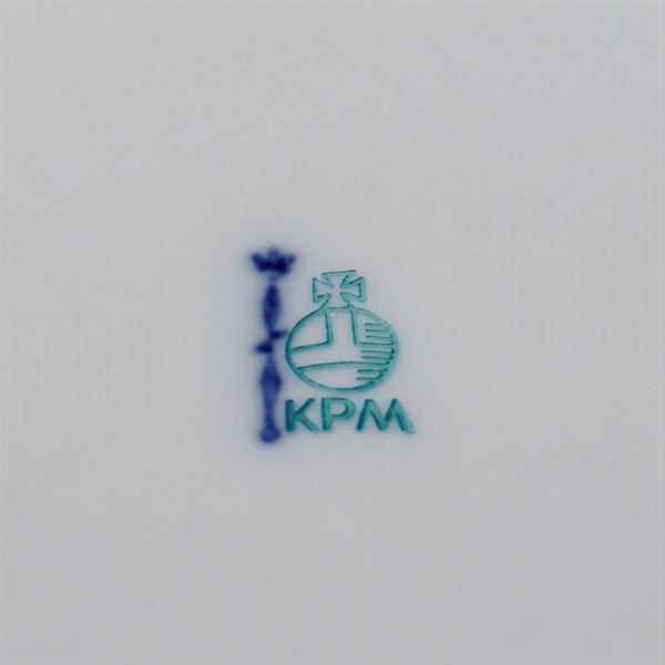tureens 20x27 cm. - 18x23cm.in porcelain with a monochrome green aqua band decoration on a white background, production brand. comprising 24 flat plates 12 soup plates 12 fruit plates a soup tureen a legume a salad bowl 3 oval serving plates 2 circular serving plates a gravy boat 2 leaf hors d’oeuvre plates