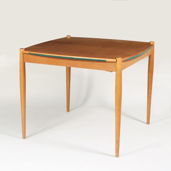 75x83x83 cm.Club mod. game table in wood, brass and green cloth Literature: Rivista dell"Arredamento 47, Novembre 1958, Domus 348, Novembre 1958, p. 42