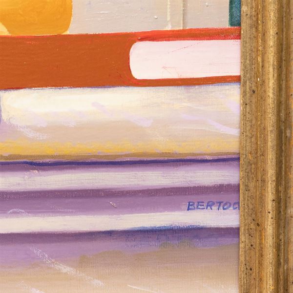 60x80 cm."La conchiglia", 1985, oil on canvas, signed lower right, signed, dated and titled on the reverse, framed