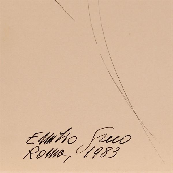 70x52cm."Maternity", 1983, Indian ink on Fabriano paper, signed and dated lower left, framed