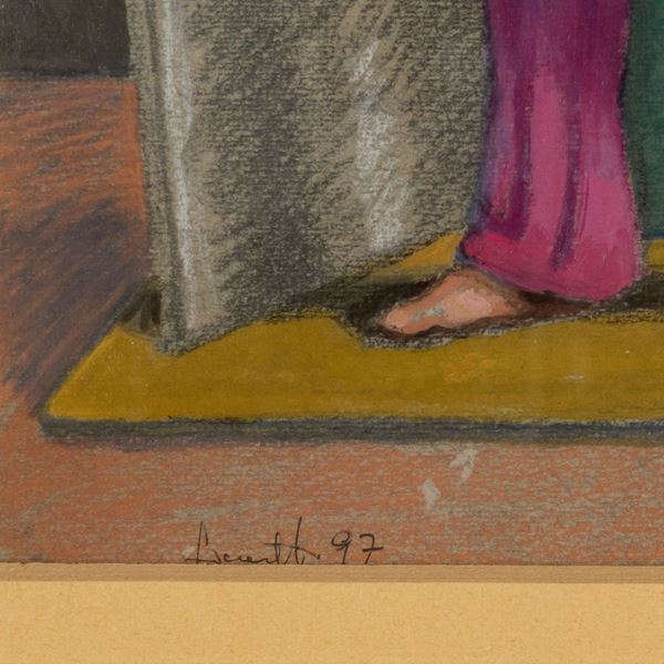 40x30cm."Donna con scimmia", 1997, mixed media on paper, signed and dated lower left