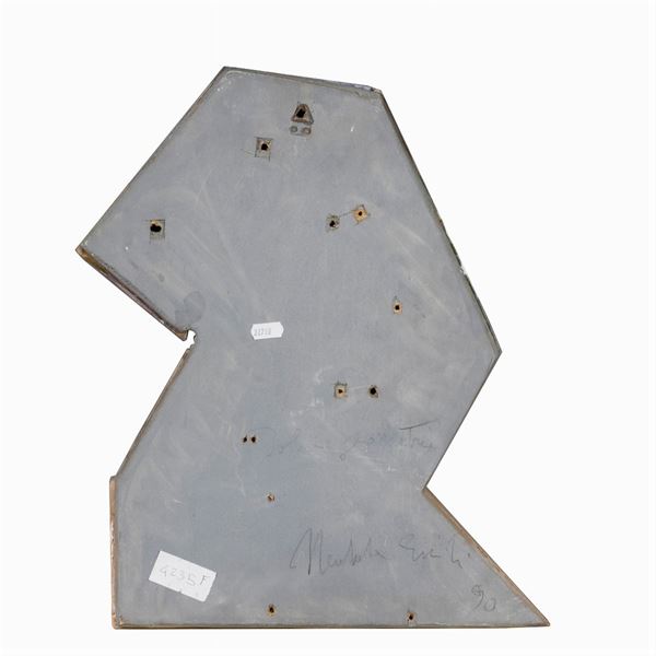 44 x 34.5 x 3cm."Jolie geometrie", 1990, painted terracotta sculpture, signed and dated on the back Provenance: M. Carbone Collection, Galleria La Bussola, Cosenza
