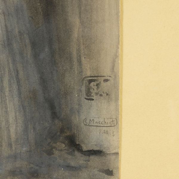 35.5x23cm."L'appuntamento furtivo", mixed media on paper, signed lower right, framed