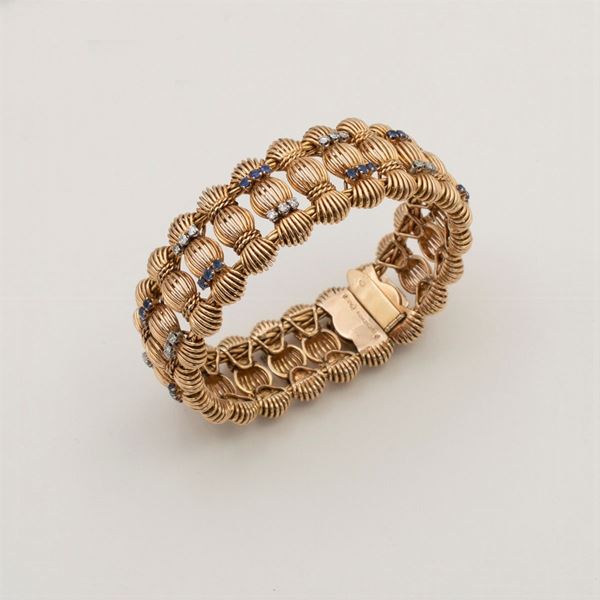 weight 86 g.brilliant-cut diamonds circa 0.80 ct alternating with round sapphires, hidden closure, length 19.5 cm.