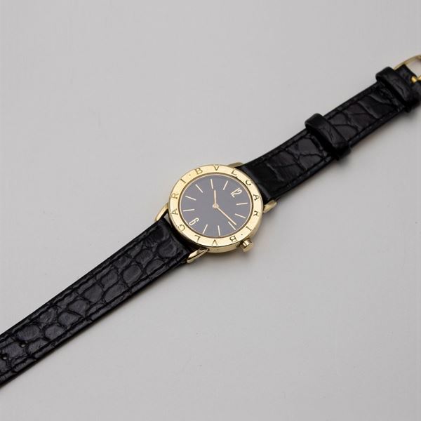 in 18kt yellow gold, ref. BB30GL, 30mm case. black dial with Arabic numerals and indexes, signs of wear, sapphire crystal, signs of wear, quartz movement, leather strap with gilt metal buckle,signed case, dial and movement, complete with box