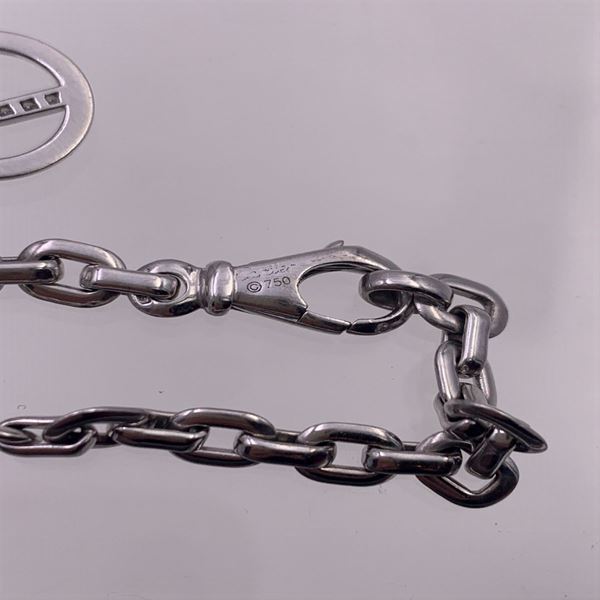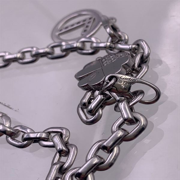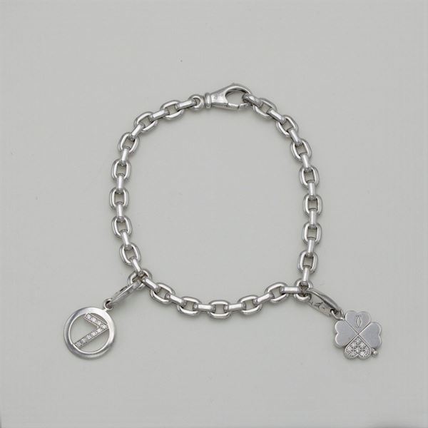 weight 22 g.in 18kt white gold with two charms in 18kt white gold and brilliant cut diamonds, length 18.5 cm.