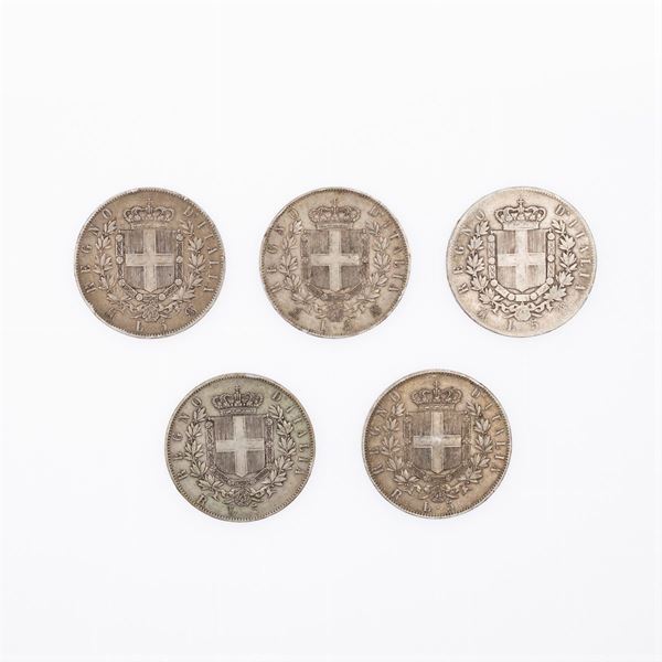 5 Lire Vittorio Emanuele II Regno d'Italia 1861-1878 (5 pezzi)