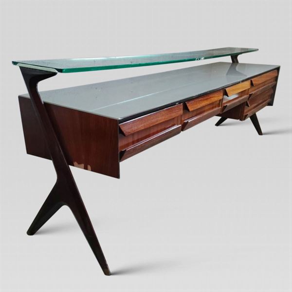 73x200x51 cm.wooden sideboard, back-painted glass and transparent glass