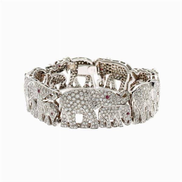 weight 67 gr.brilliant cut diamonds circa 10 ct, ruby eyes, length 20 cm.