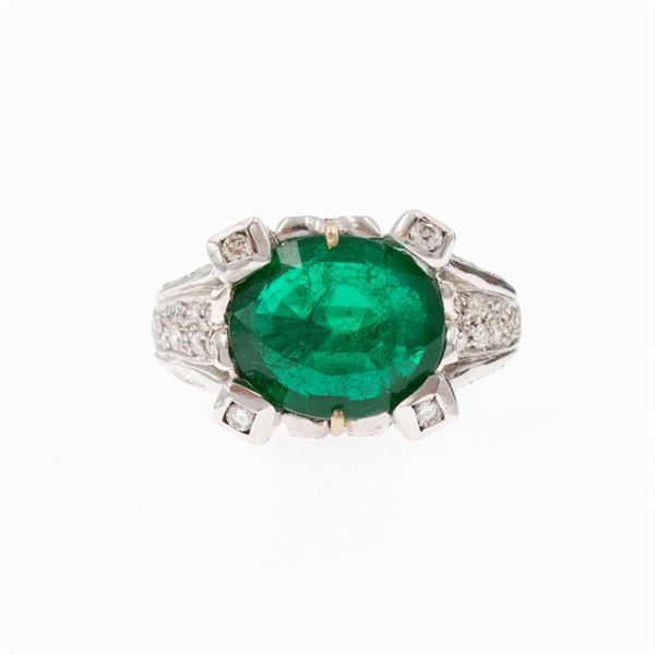 18kt white gold ring with natural emerald