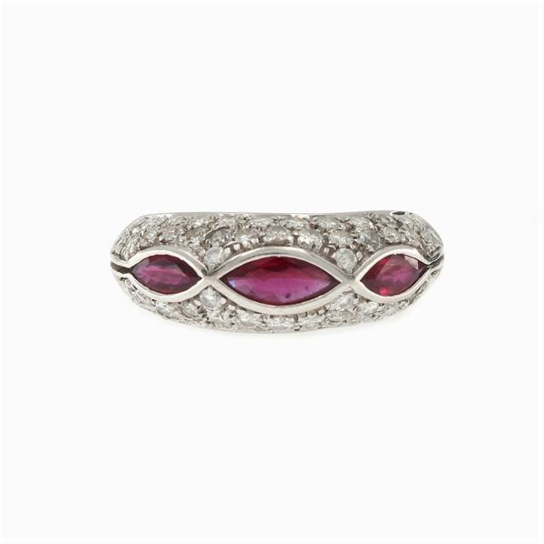 weight 6 g.three marquise cut rubies of circa 0.90 ct and brilliant cut diamonds of circa 1 ct, size 17