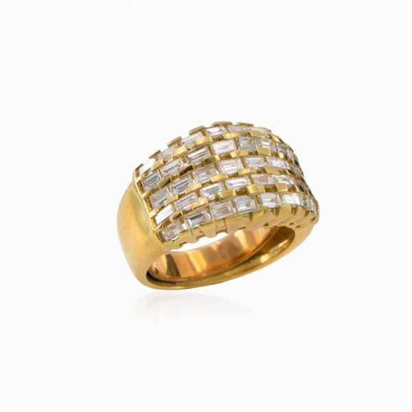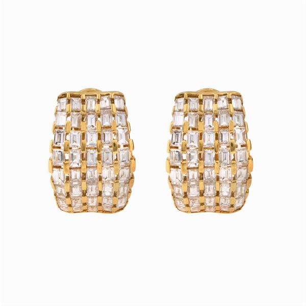 weight 21 gr.diamonds circa 4.50 ct comprising lobe earrings, dimension 2X1.8 cm. - ring size 12 internal spring