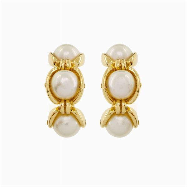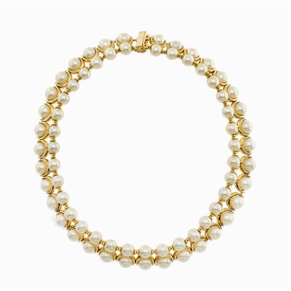 gold weight 140 gr.pearls circa 9mm. comprising a choker and lobe earrings, length 45 cm. and 3 cm. complete with case