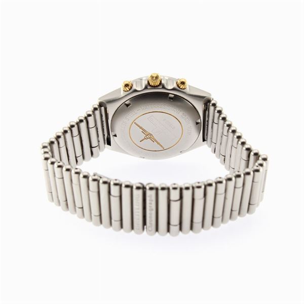 weight 167 gr.in steel, ref. 81950A - 17032, 40 mm round case. cream dial with luminescent indexes and hands, date display at 3 o'clock, three auxiliary dials for the chronograph, unidirectional rotating bezel, sapphire crystal, tachymetric and telemetric scale, mechanical movement, with automatic winding, Valjoux caliber 7750, original Rouleaux Bullet steel bracelet with deployante closure