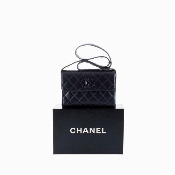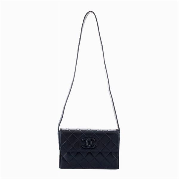 24x17x8 cm.blue leather, golden finishes, burgundy leather interior with one compartment and two pockets, external rear pocket, flap closure with logo, leather shoulder strap, complete with box