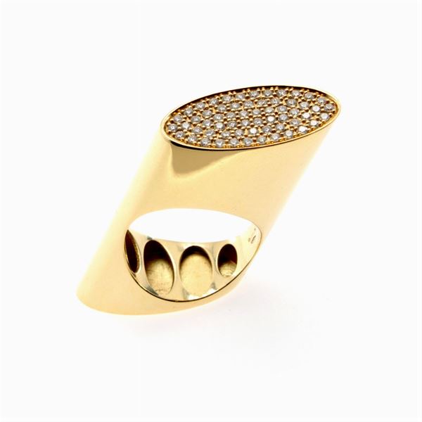 weight 16 g.in 18kt yellow gold and circa 0.80 ct diamonds, size 17