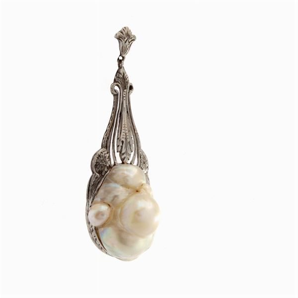 weight 6 g.white color with yellow shade, measures circa 14.62x18.14mm. h. 9.90 mm., set on an 18kt white gold pendant, complete with gemological certificate