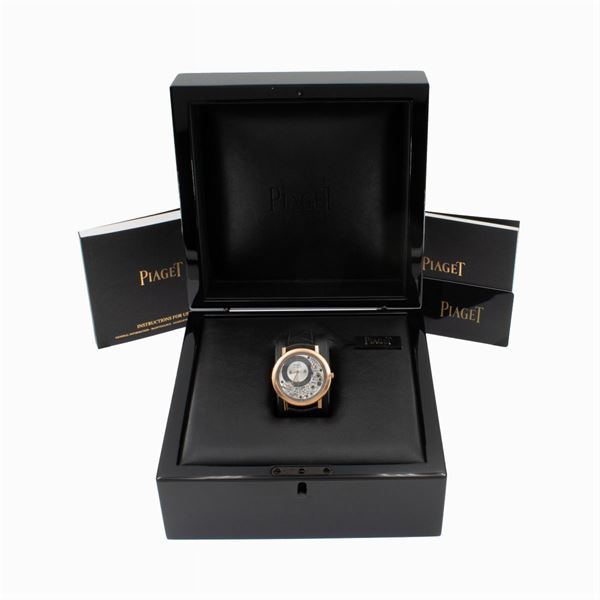 in 18kt rose gold, ref. P11311 - 1248059, 41 mm round case. duodial dial with visible indexes and movement, mechanical movement with automatic winding, caliber 910 P, sapphire crystal, original leather strap with original 18kt yellow gold buckle, signed case, dial and movement, complete with box and papers, never worn