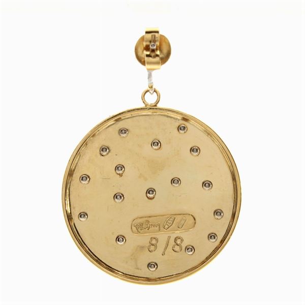 weight 25 gr.in 18kt yellow gold and en tremblant spheres in white gold, dimensions 3.5x3.3 cm.