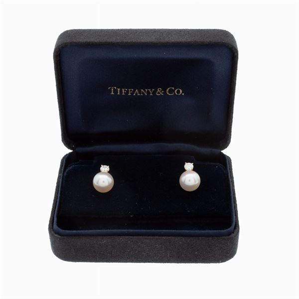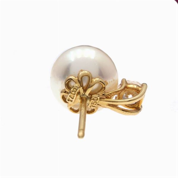 weight 4 g.cultured pearls circa 9 mm. surmounted by two brilliant-cut diamonds circa 0.30 ct, one butterfly missing, complete with box