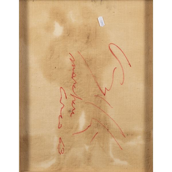 "Maschere circo", 1963, oil on canvas, signed lower right, signed, dated and titled on the reverse