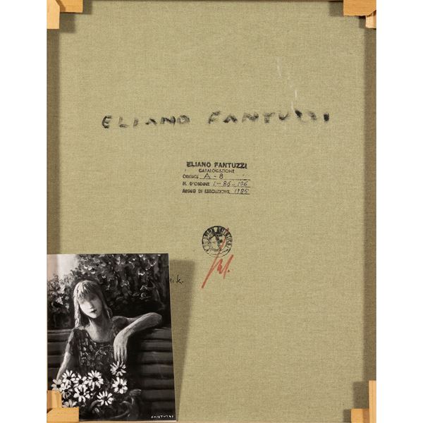 "Girl on the bench", 1985, oil on canvas, signed lower right and on the back, framed