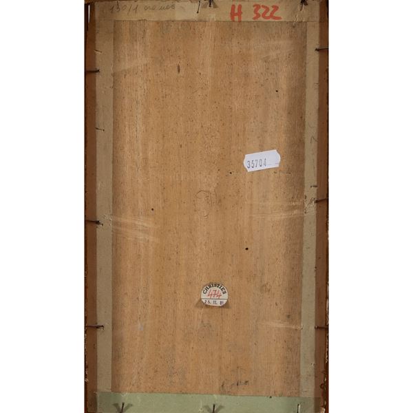 29x17 cm."Landscape with fountain", oil on panel, signed lower left, framed