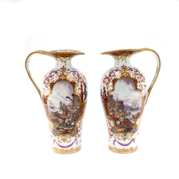 h. 17 cm.raffiguranti marine con figure entro riserve, marchio sotto le basi