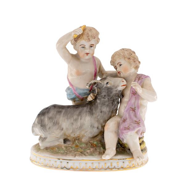 h. massima 16 cm.raffiguranti giochi di putti con caprette, lievi difetti e restauri