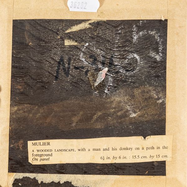 16x15 cm."Landscape with wayfarer", oil on panel, within frame