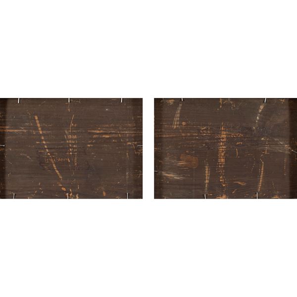 16x21.5 cm."Cattle grazing and travelers at the source", pair of oils on copper, within frames
