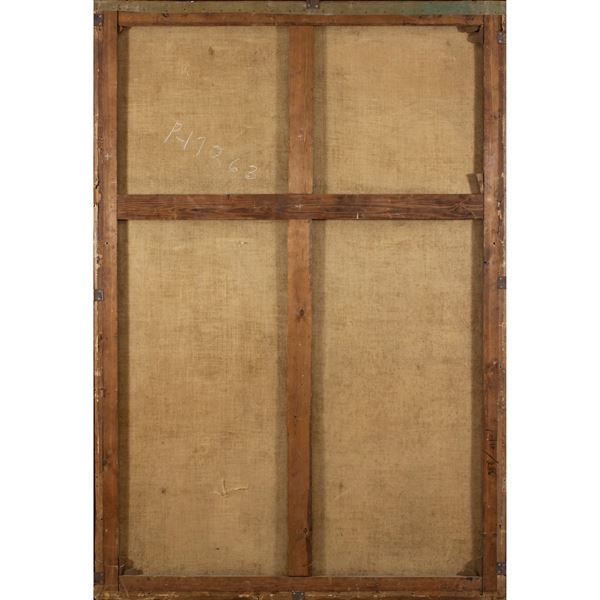 213x148 cm."Veduta del ponte di San Rocco", oil on canvas, framed, defects