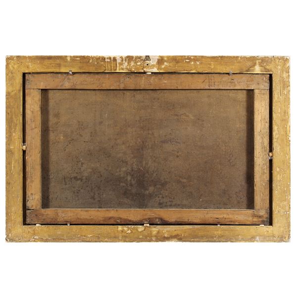 62x102 cm."Clorinda and Tancredi", oil on canvas, signed lower right, within frame