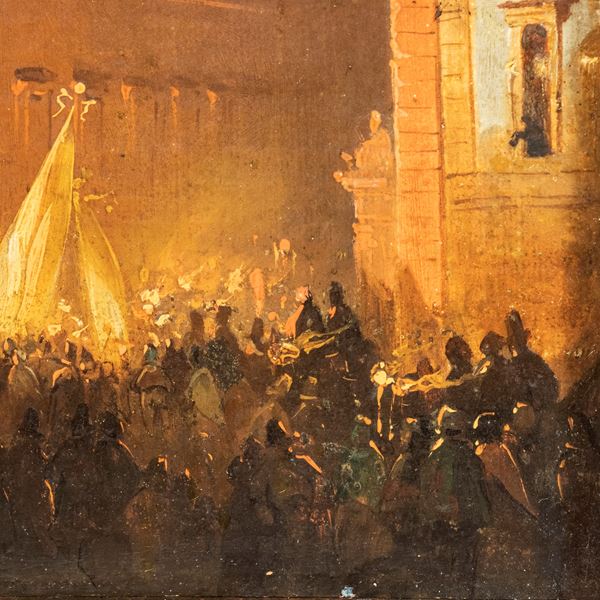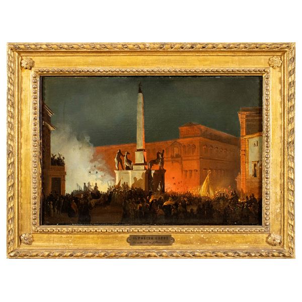 29x43 cm."La notte del 10 febbraio 1848", oil on cardboard on canvas, signed lower right, within frame Provenance: private collection Rome