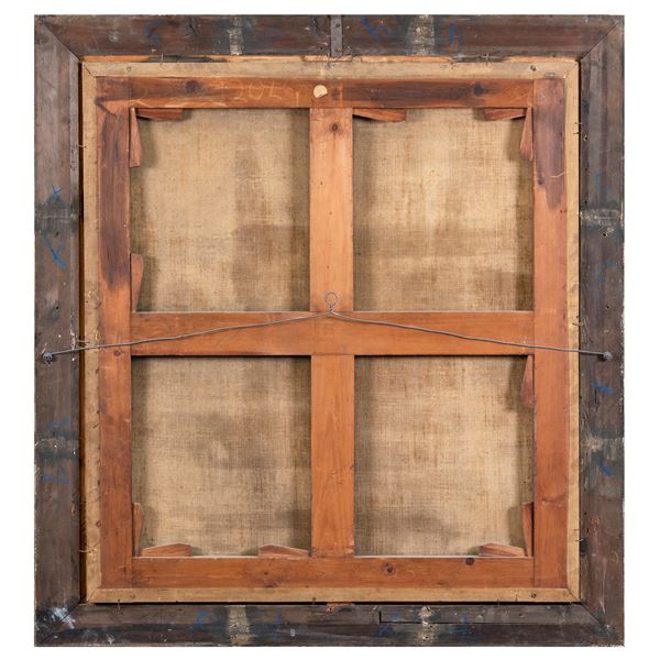 95x87 cm."Still life with dog and sculpture", oil on canvas, framed