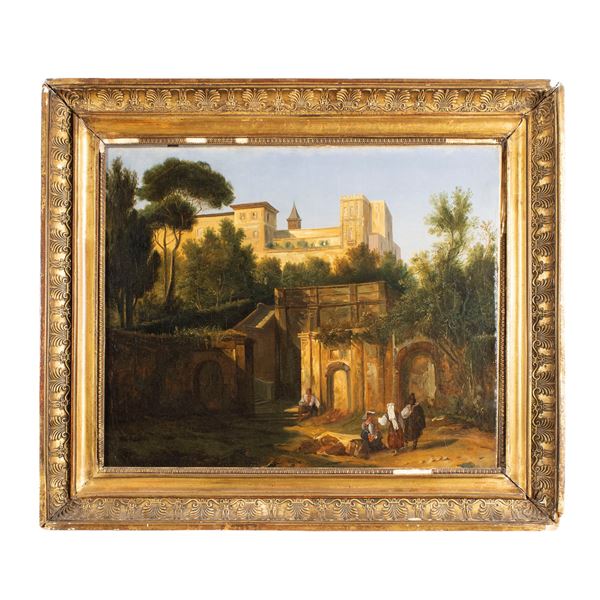37.5x46 cm."View of Villa d'Este", oil on canvas, framed