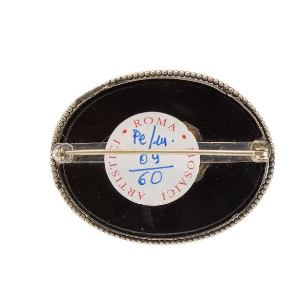 3.9x5cm.oval shape with micromosaic depicting "Pastore in riposo e capretta"