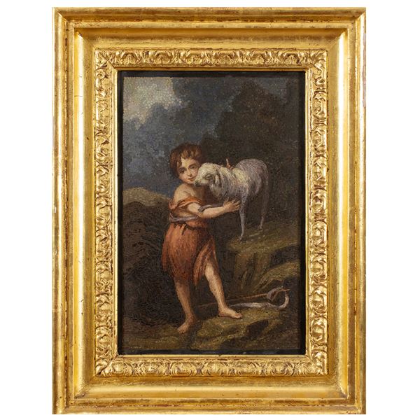 31.5x21 cm.depicting "San Giovannino con l'agnello", within a gilded wooden frame