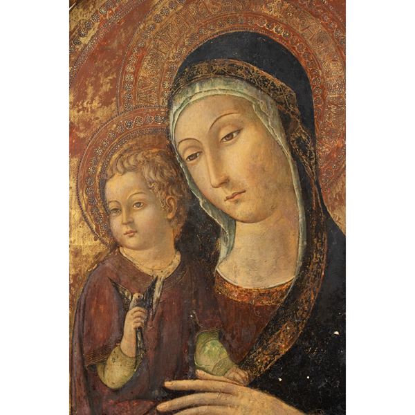 "Madonna con Bambino e cardellino", panel with a gold background, within frame